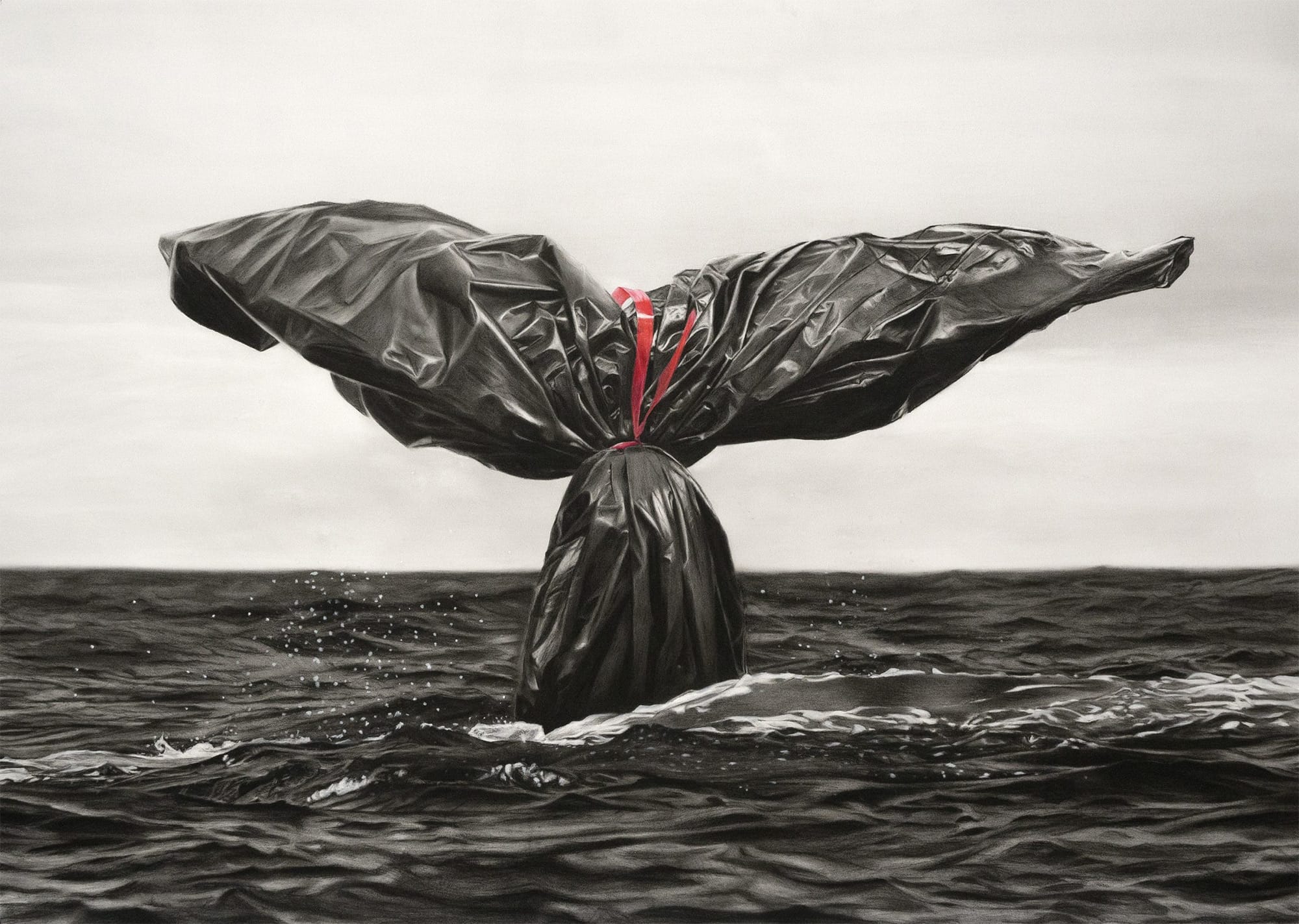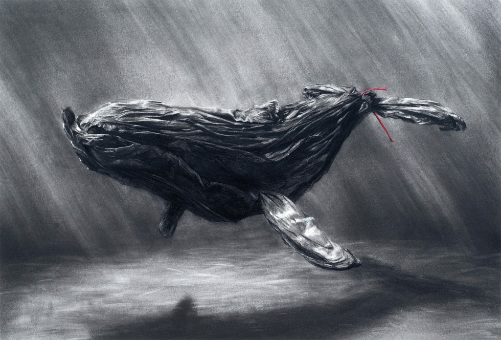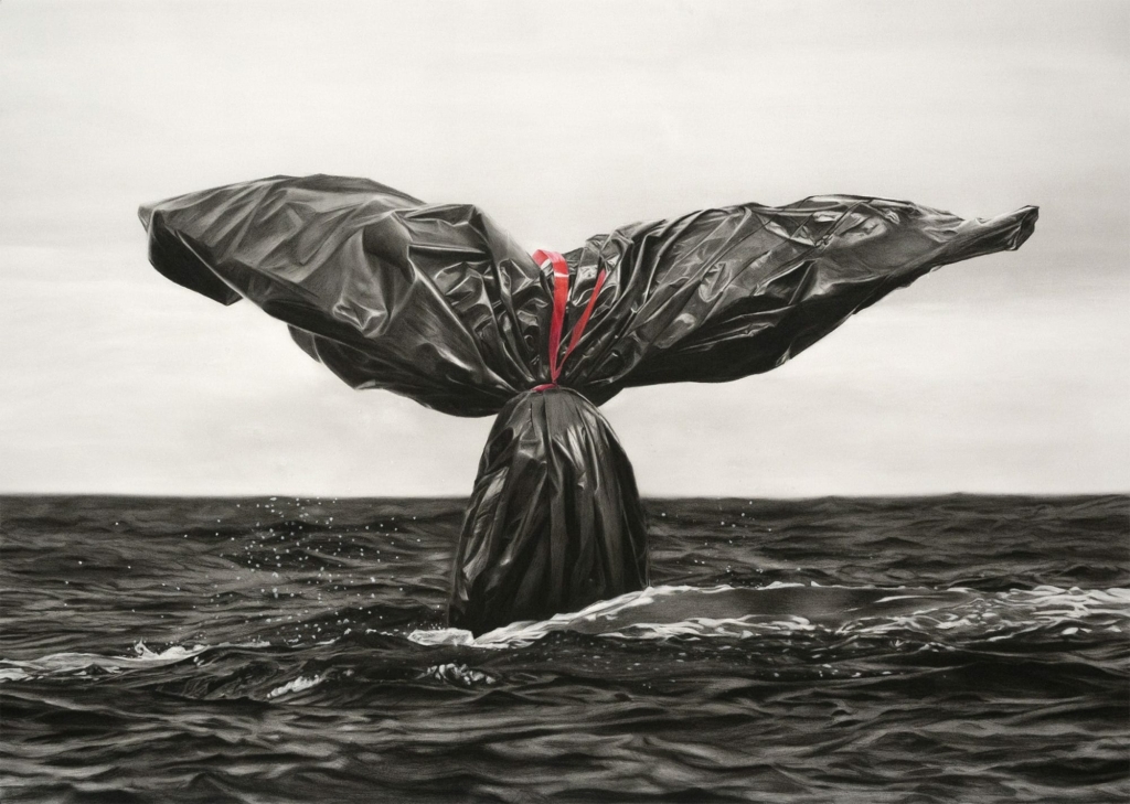 Les artistes français Paul Ressencourt et Simon Roche, plus connus sous le nom du duo Murmure, proposent une série d’œuvres autour du sac poubelle intitulée “Garb-age” et explore ainsi l’impact de l’homme sur son environnement.